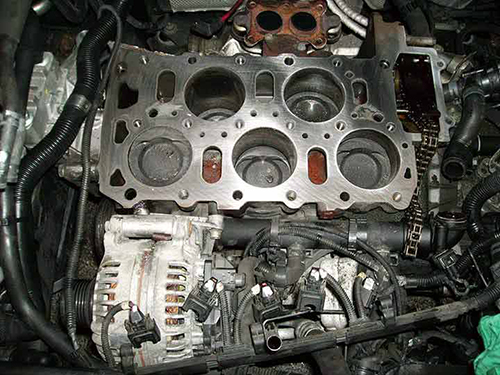 بیشتر سوراخ هایی که در سیلندر ایجاد می شود در قسمت بالای سیلندر (جایی که سوپاپ ها و شمع قرار دارند که به سر سیلندر معروف است) قرار دارد که به خود سیلندر متصل است. عموما ً سیلندر و سر سیلندر با یک واشر که بین این دو فشرده شده، به همدیگر پیچ شده اند تا یک آب بندی مطمئن تری ایجاد کند. اگر واشر خراب شده باشد سوراخ های کوچک موجود بین سیلندر و سر سیلندر بزرگتر می شوند و این سوراخ ها از دلایل نشت هستند.