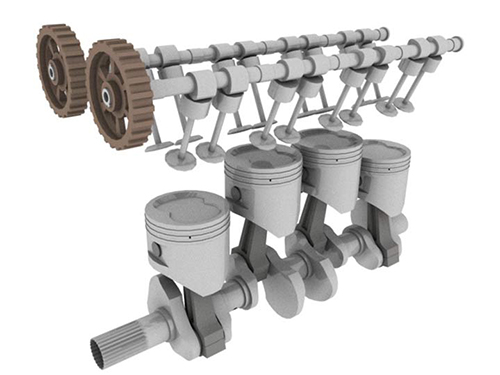 سوپاپ های ورودی و خروجی در زمان مناسبی باز می شوند تا مخلوط سوخت و هوا وارد، و گازهای خروجی تخلیه شوند. توجه کنید که هر دو سوپاپ در طی کورس تراکم و احتراق بسته می شوند و محفظه احتراق آب بندی شده ای ایجاد می کنند.